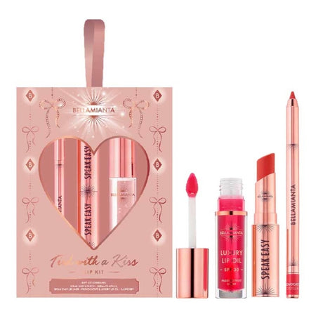Bellamianta Tied with a Kiss Speak Easy Lip Kit Gift Set is the ultimate lip set with everything you need for a full lip look. Featuring the creamy Speakeasy Lipstick, the precision-perfect Speakeasy Lipliner and the Luxury Lip Oil, this lip trio offers long-lasting colour, flawless lip definition, and a glossy finish, perfect for the festive season