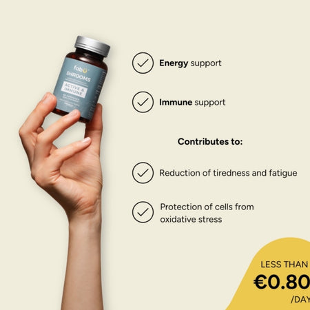 fabÜ SHROOMS ACTIVE & IMMUNE gives you a natural boost of energy while supporting your immune health. With consistent use, you'll experience reduced fatigue, enhanced energy, and better immune function, helping you feel more energised and ready to take on your day. This powerful blend of Cordyceps and Chaga mushrooms, along with essential vitamins and minerals, works to protect your cells from oxidative stress and keep you active, energised and protected.