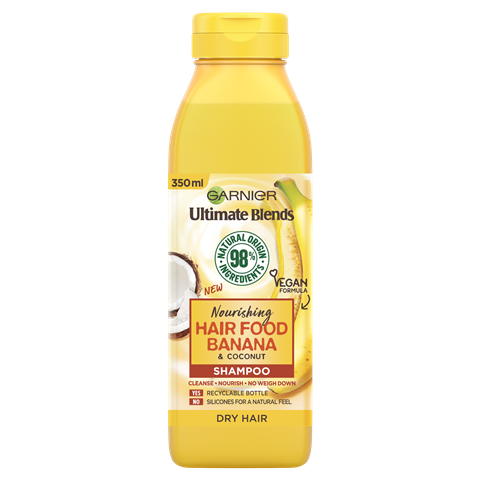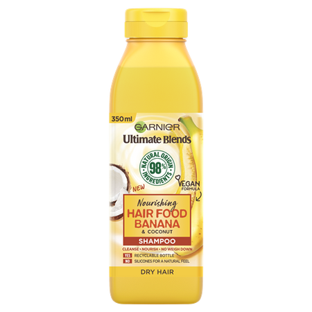 Dig into Garnier Ultimate Blends Hair Food Banana Shampoo to help nourish dry hair, blended with natural ingredient extracts of Banana & Coconut. Its light foam gently cleanses and nourishes dry hair, with no weigh down. For intensely nourished, healthy-looking hair.