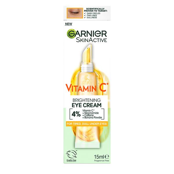 Garnier's eye cream helps to get rid of dark circles and under eye bags – the 1st Eye Cream highly concentrated with 4% [Niacinamide + Caffeine + Vitamin C* + Banana Powder] for a bright awake look.