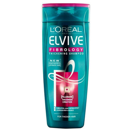 L’Oreal Elvive Fibrology Thickening shampoo is for use on fine hair. L’Oreals breakthrough technology is proven the increase hair thickness. The Filloxane penetrates the hair, instantly leaving thicker looking hair with body. Over time each strand of hair gets thicker and thicker.