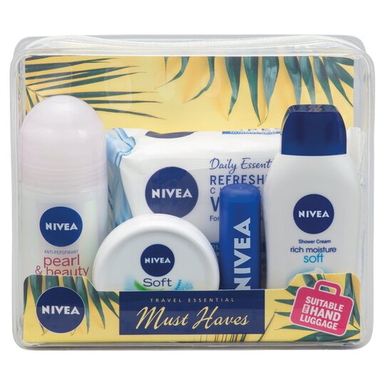 NIVEA® Rich Moisture Soft Caring Shower Cream: Aqua, Sodium Laureth Sulfate, Cocamidopropyl Betaine, PEG-7 Glyceryl Cocoate, Parfum, Glycerin, Prunus Amygdalus Dulcis Oil, Sodium Chloride, PEG-40 Hydrogenated Castor Oil, Polyquaternium-7, Citric Acid, PEG-200 Hydrogenated Glyceryl Palmate, PEG-3 Distearate, Sodium Benzoate, Linalool, Limonene, Citronellol, Benzyl Alcohol, Geraniol, Butylphenyl Methylpropional, Alpha-Isomethyl Ionone, NIVEA Original Care Caring Lip Balm: Octyldodecanol, Hydrogenated Rapeseed Oil, Ricinus Communis Seed Oil, Cera Alba, Ethylhexyl Stearate, Cetyl Palmitate, Cetearyl Alcohol, Polyglyceryl-3 Diisostearate, Copernicia Cerifera Cera, Butyrospermum Parkii Butter, Persea Gratissima Oil, Simmondsia Chinensis Seed Oil, Aqua, BHT, Limonene, Linalool, Citronellol, Aroma, NIVEA Pearl & Beauty Anti-Perspirant Roll On: Aqua, Aluminum Chlorohydrate, PPG-15 Stearyl Ether, Steareth-2, Steareth-21, Parfum, Hydrolyzed Pearl, Persea Gratissima Oil, Trisodium EDTA, BHT, Geraniol, Benzyl Alcohol, NIVEA Soft Moisturising Cream: Aqua, Glycerin, Paraffinum Liquidum, Myristyl Alcohol, Butylene Glycol, Alcohol Denat., Stearic Add, Myristyl Myristate, Cera Microcristallina, Glyceryl Stearate, Hydrogenated Coco-Glycerides, Simmondsia Chinensis Seed Oil, Tocopheryl Acetate, Lanolin Alcohol (Eucerit®), Polyglyceryl-2 Caprate, Dimethicone, Sodium Carbomer, Phenoxyethanol, Linalool, Citronellol, Alpha-Isomethyl Ionone, Butylphenyl Methylpropional, Limonene, Benzyl Alcohol, Benzyl Salicylate, Parfum, NIVEA Daily Essentials Refreshing Cleansing Wipes for Normal Skin: Aqua, Isopropyl Stearate, Tocopheryl Acetate, Panthenol, Nelumbium Speciosum Flower Extract, Glyceryl Glucoside, Glycerin, VP/Hexadecene Copolymer, Acrylates/C10-30 Alkyl Acrylate Crosspolymer, Propylene Glycol, Ethylhexylglycerin, Sodium Hydroxide, Phenoxyethanol, Methylparaben, Limonene, Linalool, Benzyl Alcohol, Geraniol, Citronellol, Alpha-Isomethyl Ionone, Hexyl Cinnamal, Butylphenyl Methylpropional, Benzyl Salicylate, Parfum