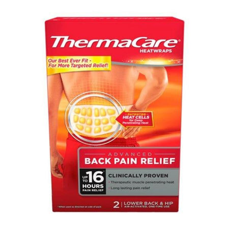 Thermacare heat wraps bring advanced relief from back pain. Each wrap gives long-lasting pain relief lasting up to 16 hours. Suitable for use with muscle tension, sprains & strains, and arthritis pain.
